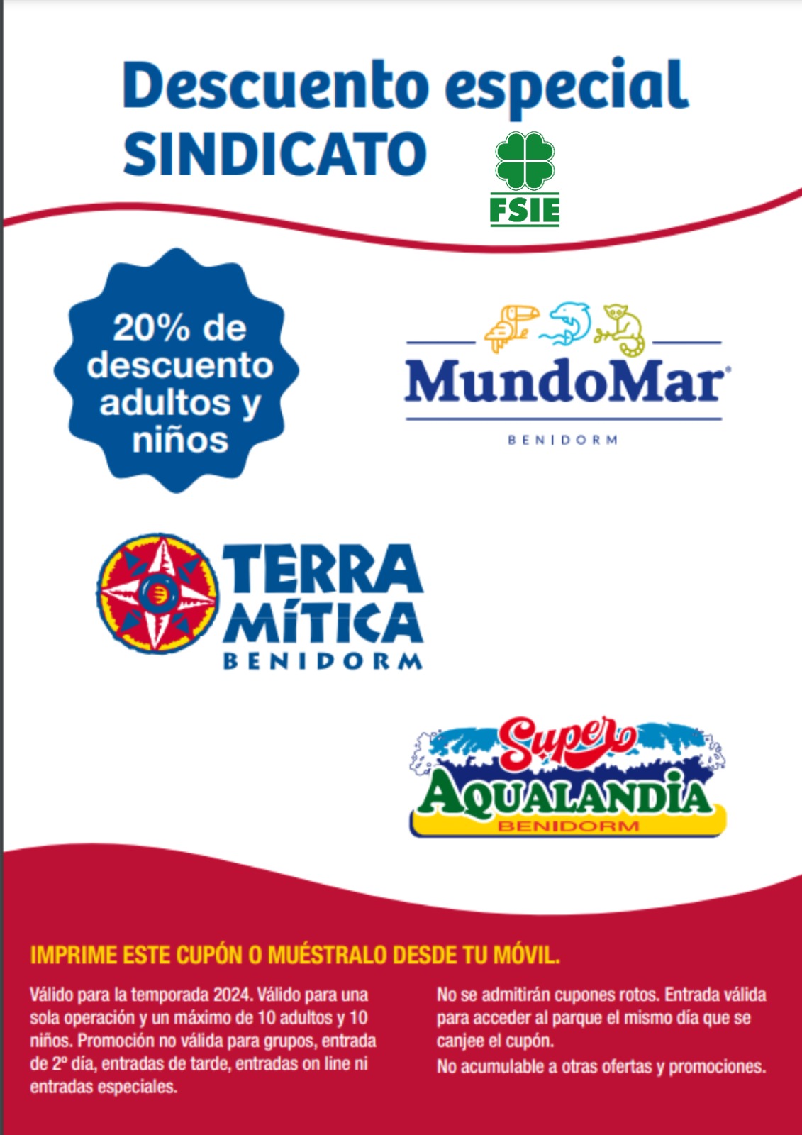 Este descuento no es acumulable a otros y será extensible a familiares de primer grado. Es necesario acreditarse como afiliado a FSIE.